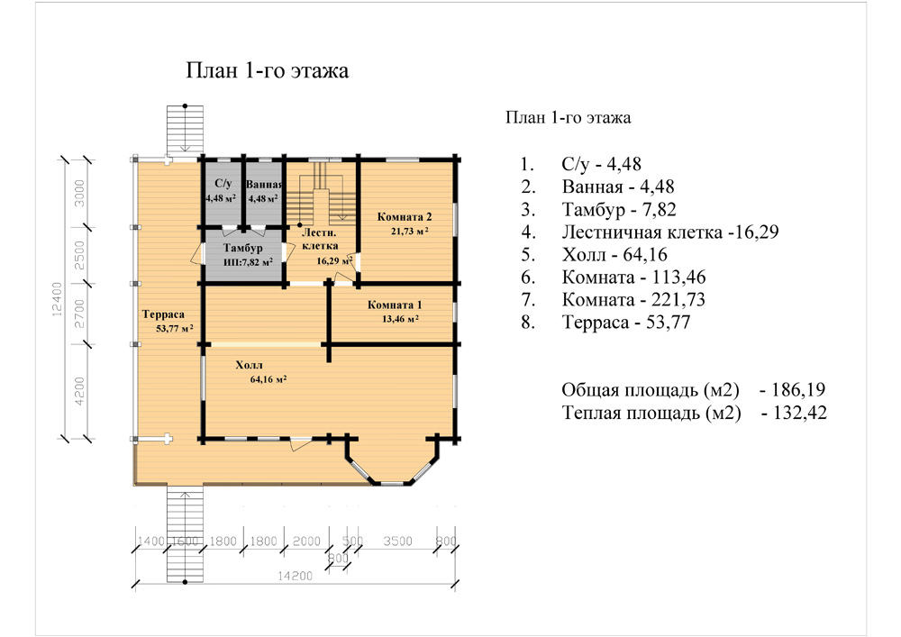 Теплая площадь: 191.6 кв.м.