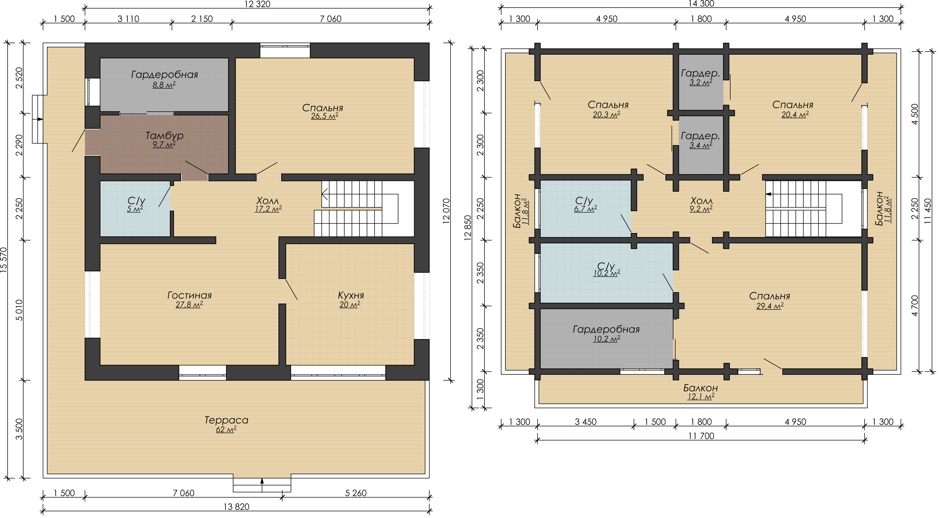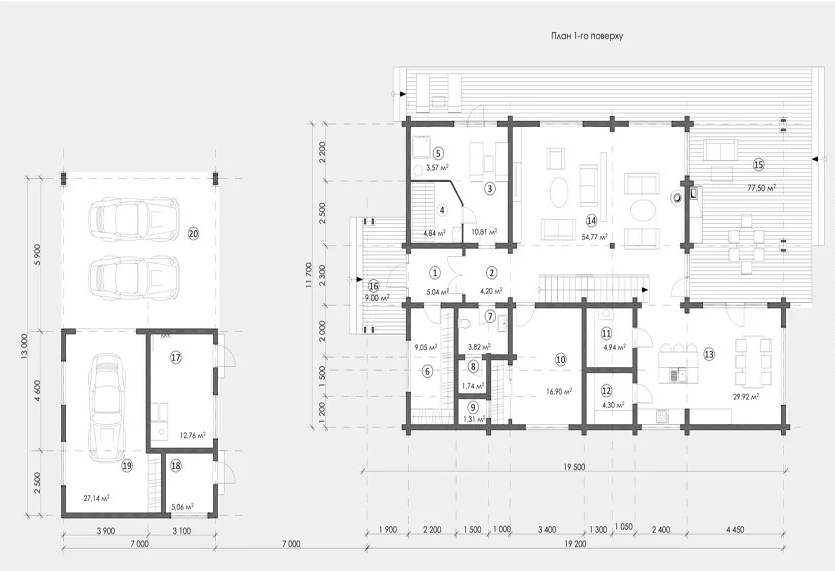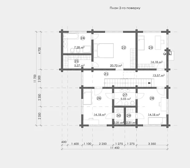 Габариты дома 23,700 на 20,350