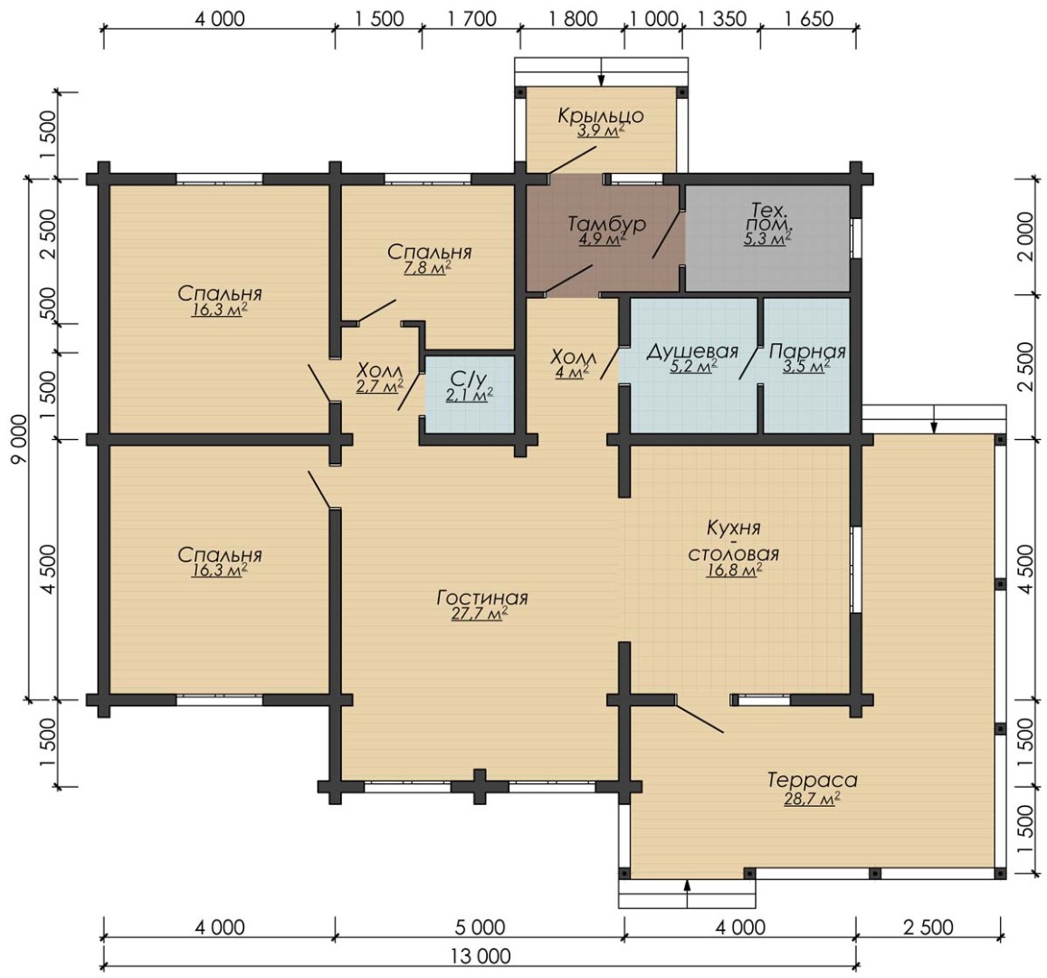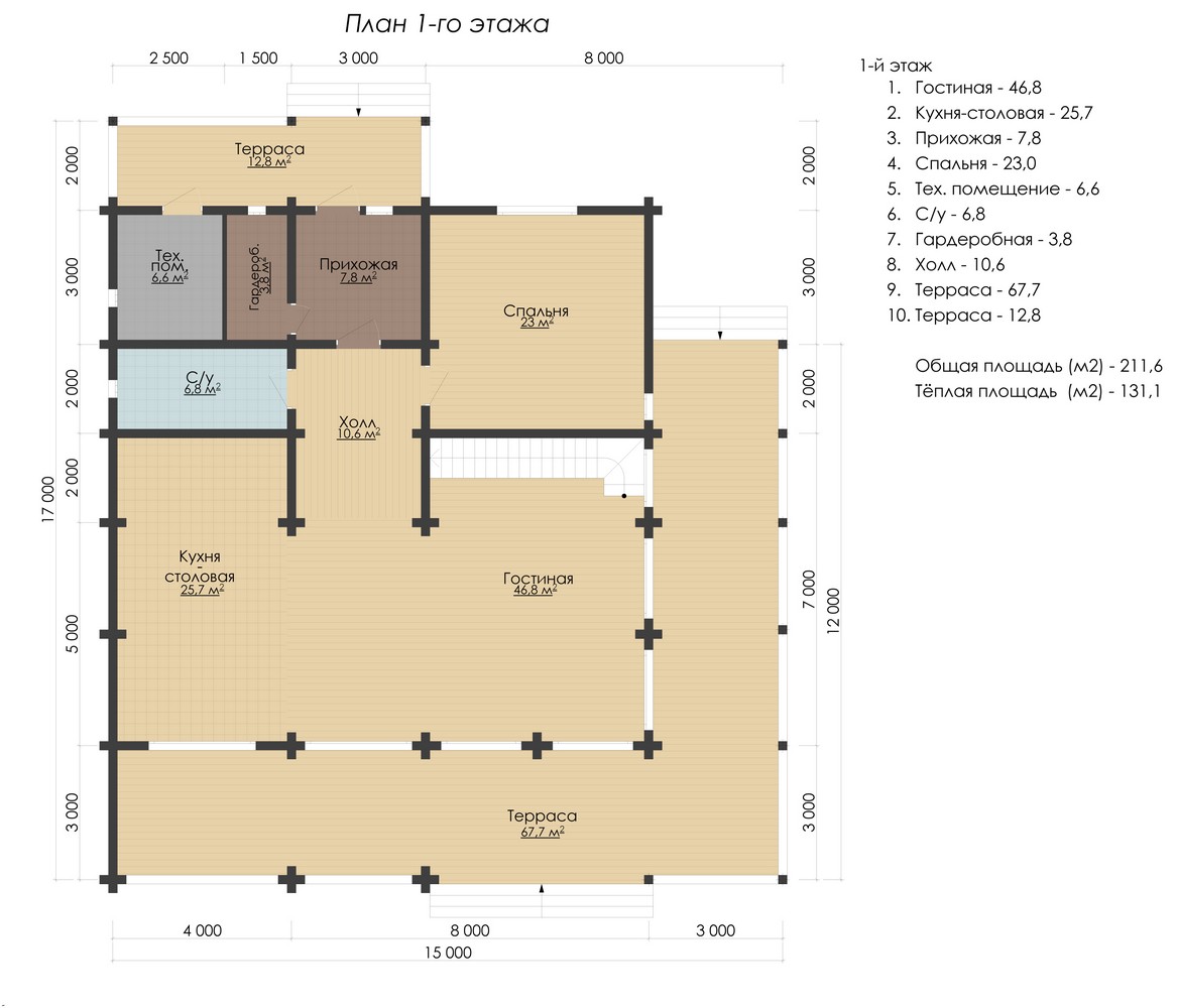 Теплая площадь: 216.7 кв.м.