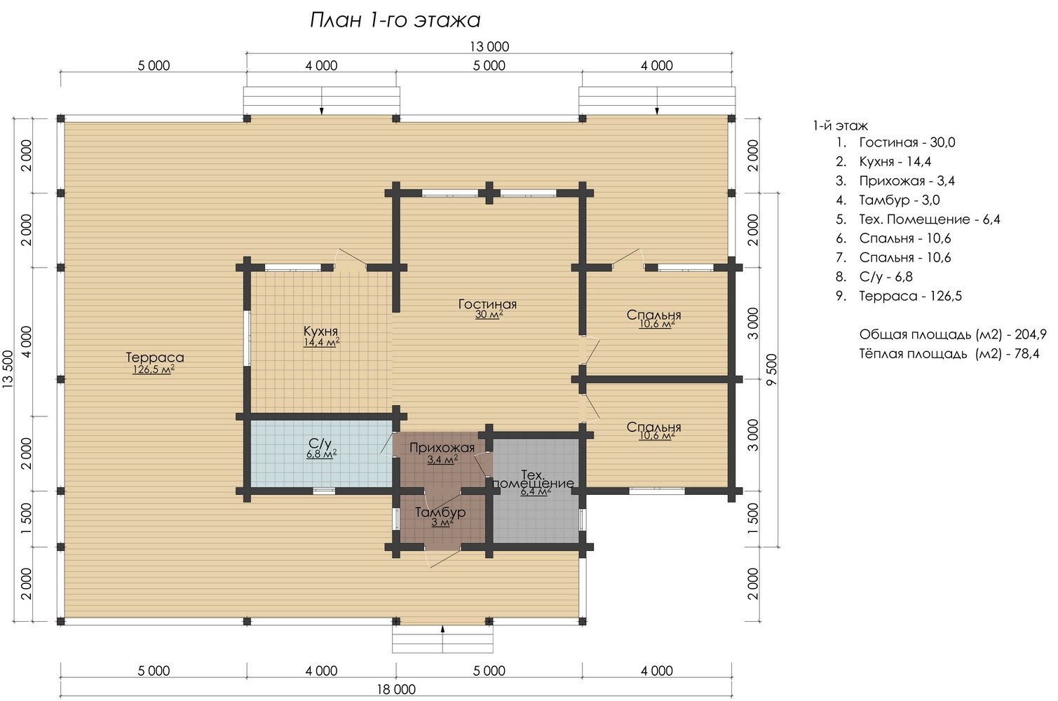 Теплая площадь: 78.4 кв.м.