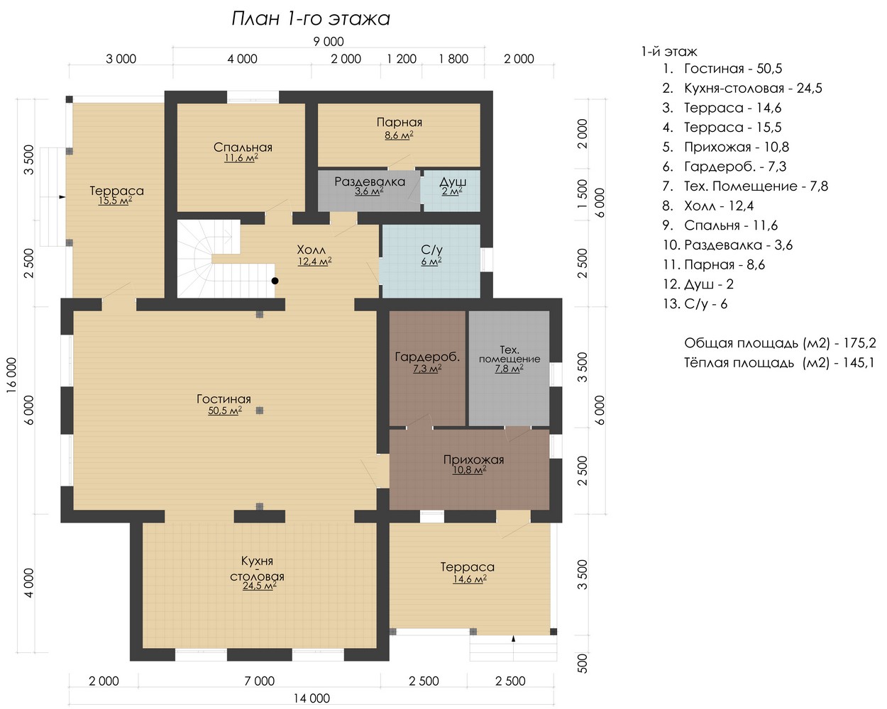 Теплая площадь: 173.7 кв.м.