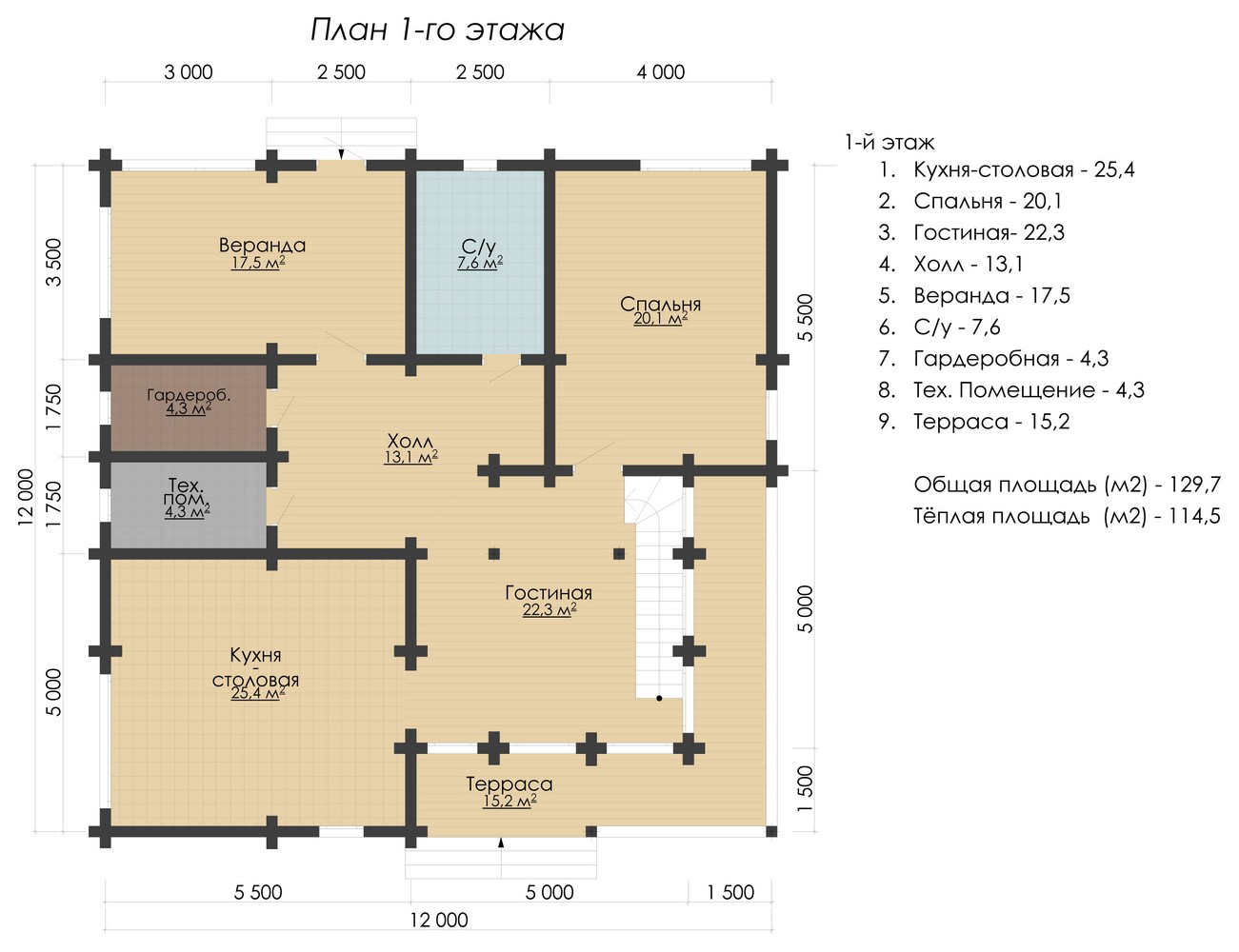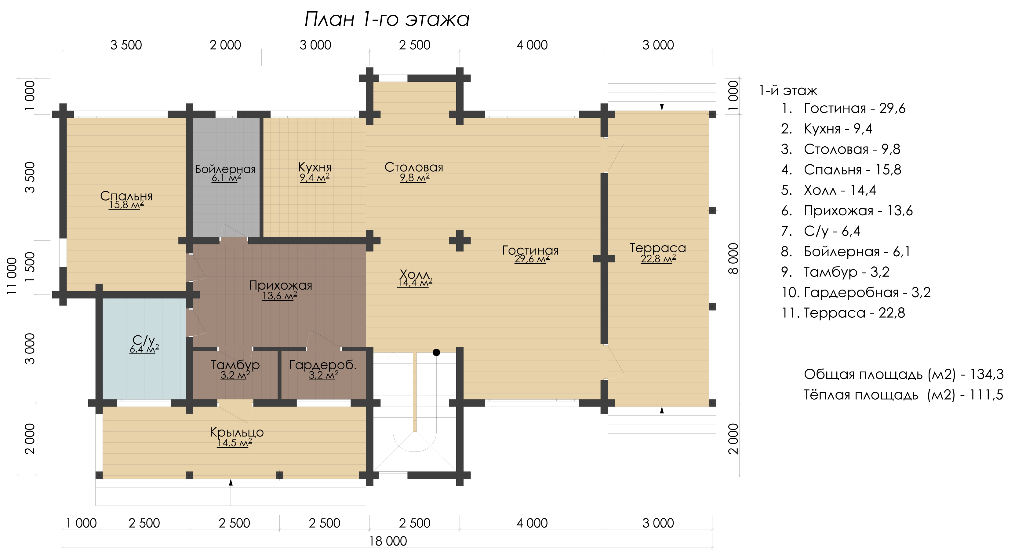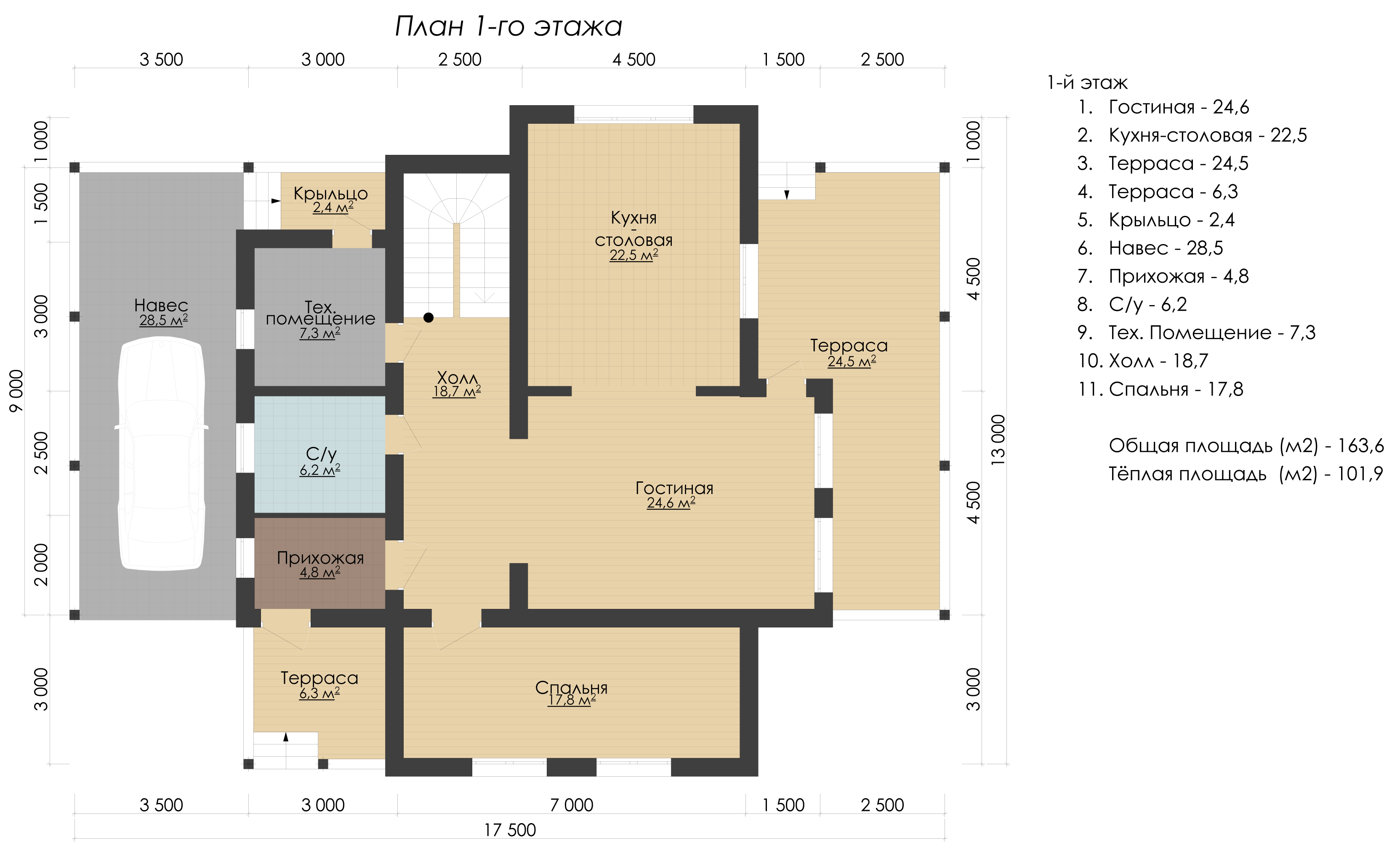 Теплая площадь: 164.1 кв.м.